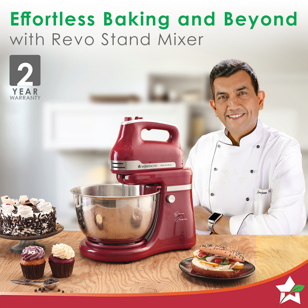 Crimson Revo Stand Mixer and Beater with 5 Speed Settings | Rotating Head Technology | 4.5L SS Bowl | 300 Watt Powerful Copper Motor | Mixing Beater, Dough Hook Attachments & Spatula | Ideal for Home Cooks & Professional Bakers | 2 Year Warranty | Red