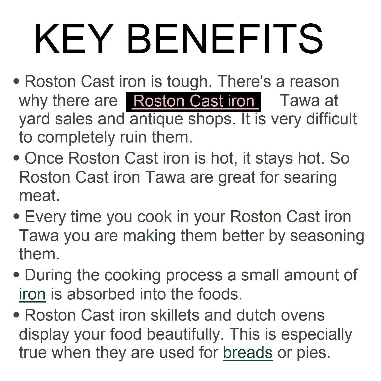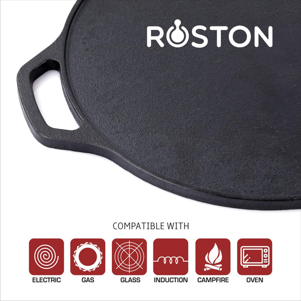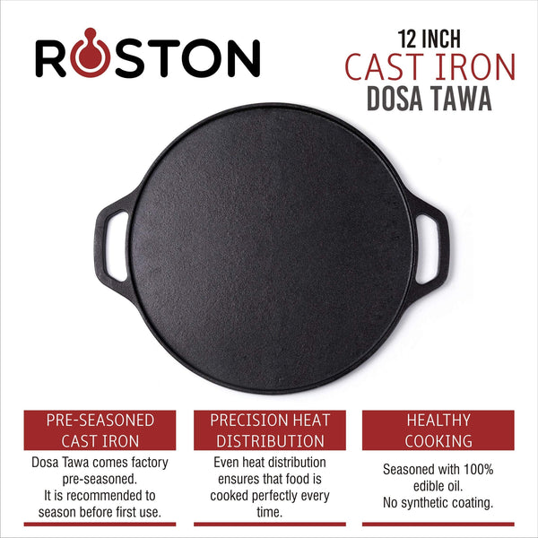 ROSTON Cast Iron Tawa Dosa | Cookware Flat Vessel Pre Seasoned | Ideal for Cooking Dosa Chapati Pizza Roti Thava(Thava Kallu Kitchen Accessories)