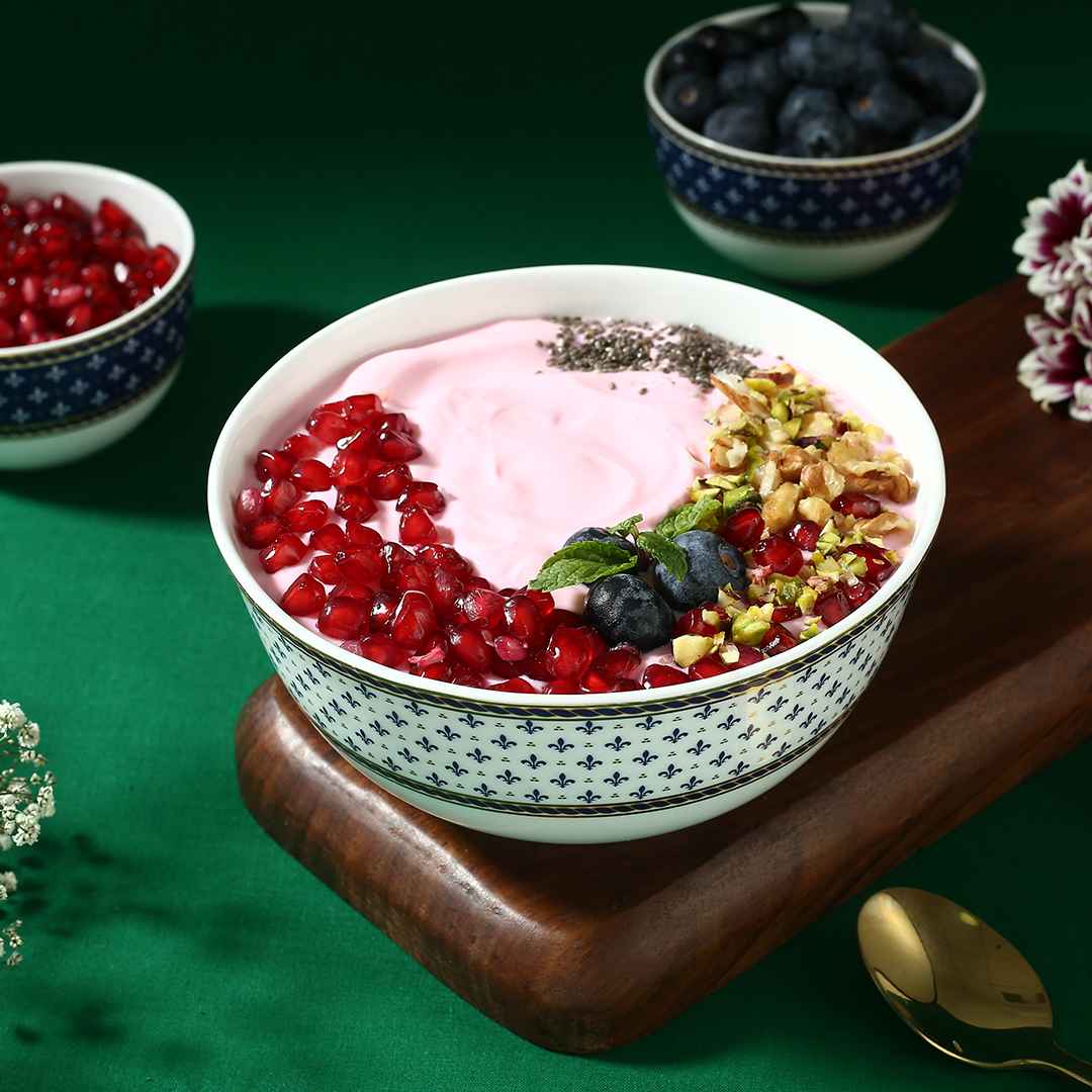 The Sicilia Royal Blue collection is the perfect balance of traditional design thought with a contemporary outlook. This collection has rich royal blue colour with real gold accents. Each piece of this collection portrays the artisan’s eye for detailing. The touch of gold rim around the motif makes it a coveted piece. They undergo three stages of firing and stringent quality check to attain the finish. The colours and gold used are food safe. Match it with its complementary pieces (sold separately) to curate a lavish dinnerware set, also perfect for gifting.