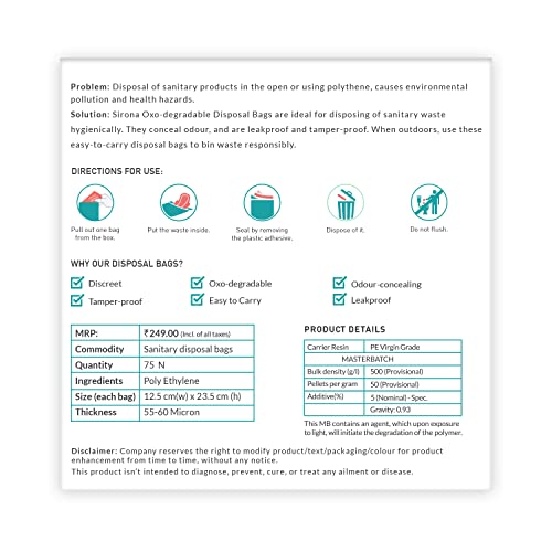 Sirona Sanitary Disposal Bags | 75 Bags | Pad Disposable Bags for Discreet Disposal of Tampons, Condoms, Sanitary Pads, Panty Liner & Personal Hygiene Waste (Green)