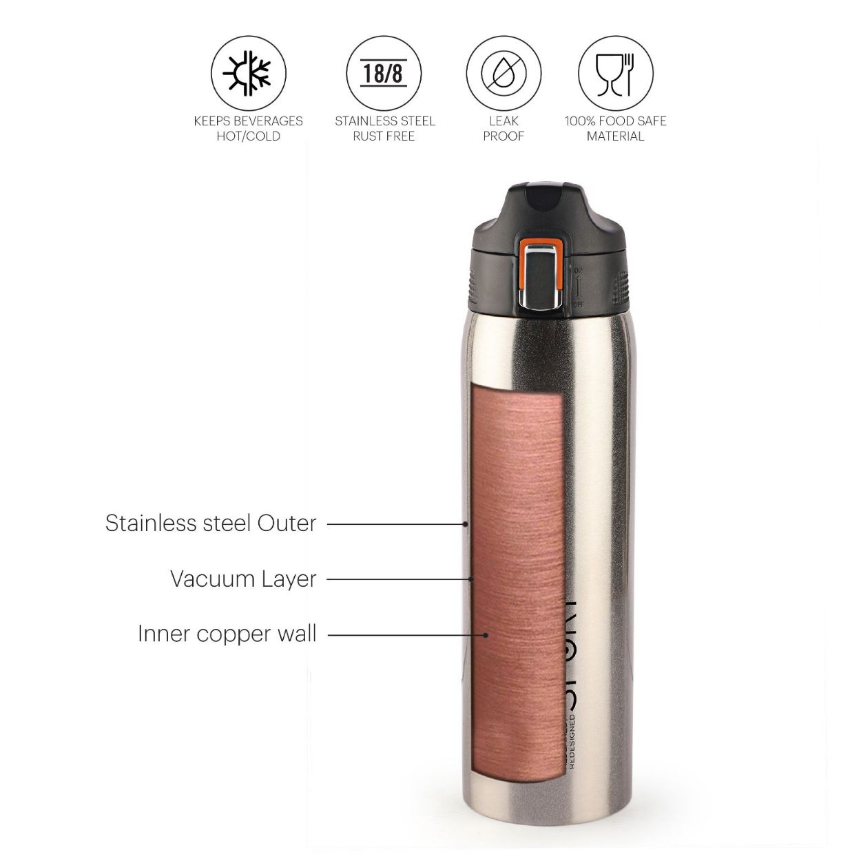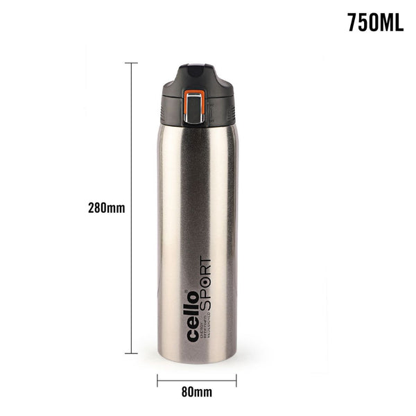 Introducing the Skipper Flask by Cello, a 750ml Vacusteel water bottle that's perfect for your hot or cold beverage needs. This stainless steel flask boasts patented vacuum technology for exceptional insulation, keeping your drinks at the desired temperature for hours. Say goodbye to reheating water and enjoy gas, effort, and time savings. With its wide mouth for easy filling and a user-friendly screw lid, it's a convenient companion that fits right in your bag.