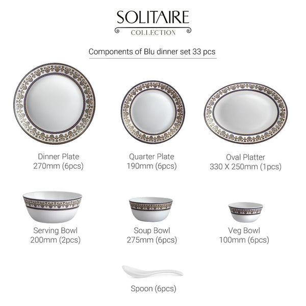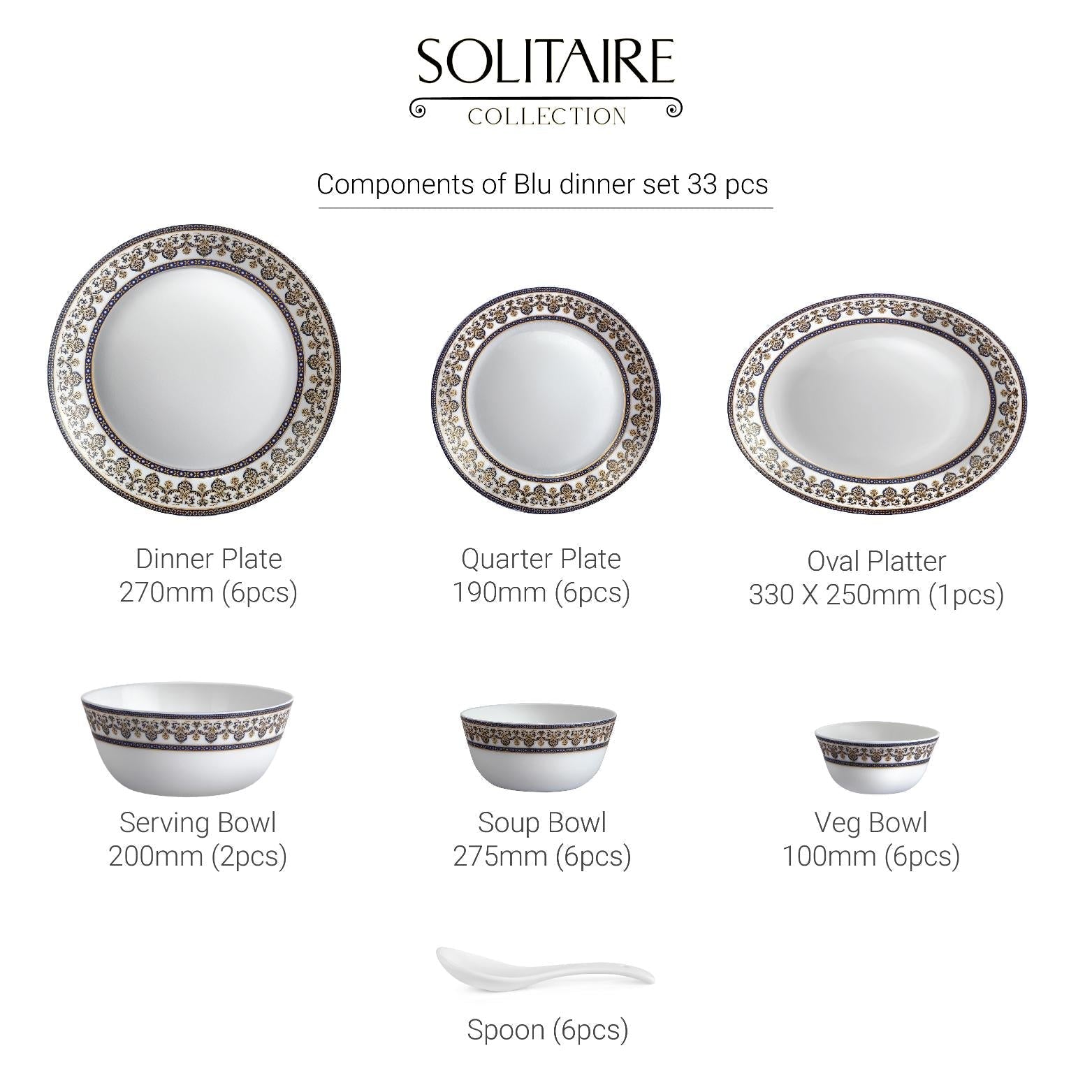 Solitaire 33 pc AB Series Dinner Set Family of 6, Blu