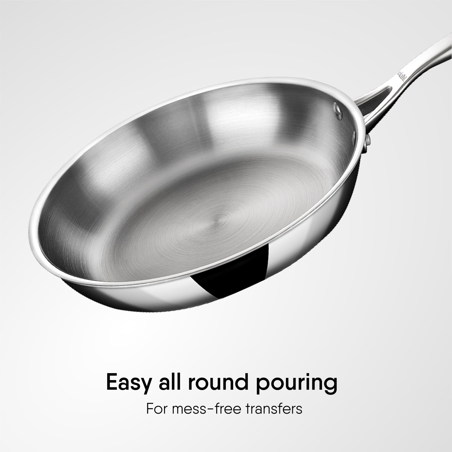 Details: The Stahl Artisan, our most premium range is designed for enthusiasts, experts, and anyone who believes in having the best. It boasts of quality, safe and enjoyable cooking experience. The Artisan is manufactured with utmost care and precision, ensuring an impeccable feel and finish, with fantastic utility and efficiency. This Stahl cookware item has a three layers sandwiched together through the entire body of the utensil, which provides an unparalleled cooking experience. HANDLES: This Artisan range of Stahl products is fitted with custom-made Investment Cast Stainless Steel handles and a professional Stainless Steel Lid. Our pans have the following features: OMNI-HEAT: Quick and uniform heat distribution with no hotspots for quick and healthy cooking. TRIPLEX: Aluminium for energy efficiency fused with stainless steel for safe food contact and durability. EASY POUR technology to keep things clean by having spill proof edges for clean and effortless all round pouring. Proudly Made in India!