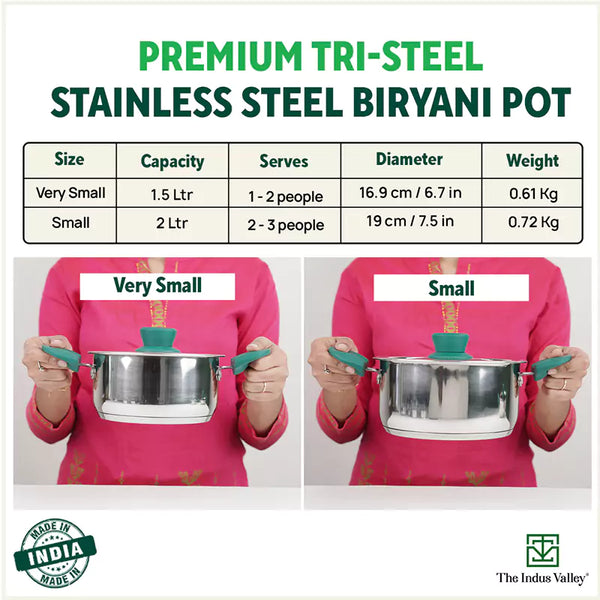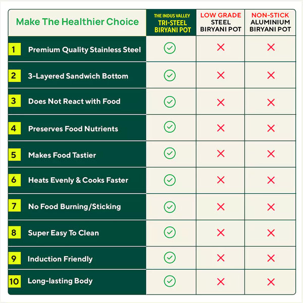 💪100% FOOD SAFE: The Indus Valley’s Premium Stainless Steel Stockpot/ Biriyani Pot/ Rice Cooking Pot/ Stockpot/ Stewpot, with Tri-ply Sandwich Bottom is 100% food-safe; with no chemical coating.