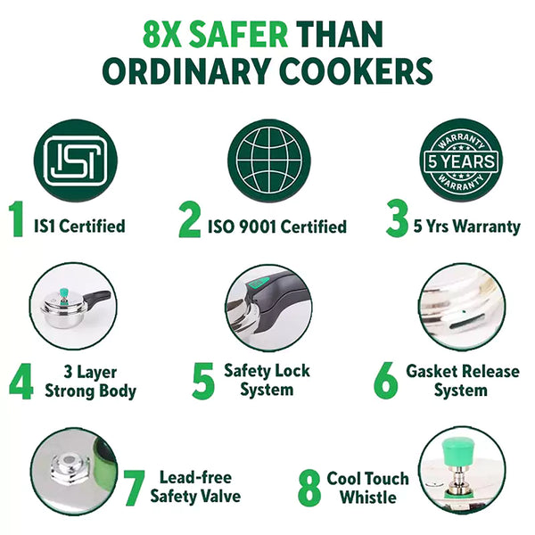 π NON-REACTIVE NATURE: Unlike aluminium cookers, this premium quality triply pressure pan does not react with food.