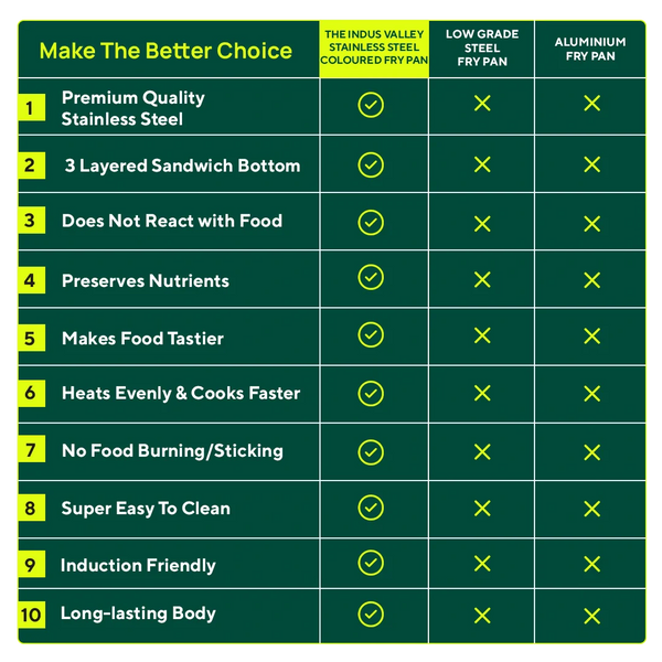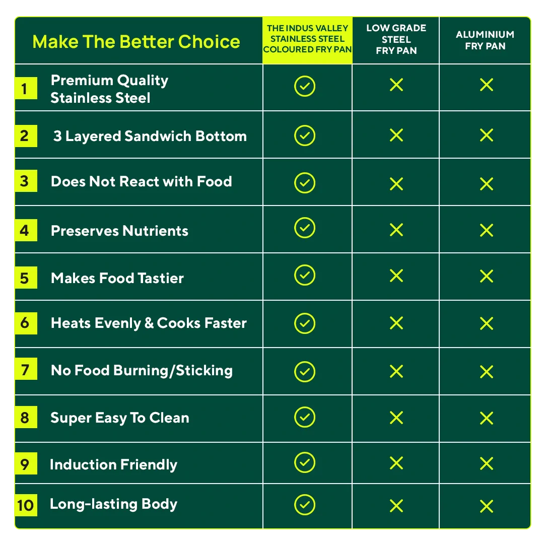 😎THE BEST CHOICE: Cooking healthy dishes in this stainless steel fry pan is easier, hassle-free and without toxins! Be assured that this will be the best stainless steel fry pan that you ever had. Guaranteed your hunt for the best frying pan in India will be over!