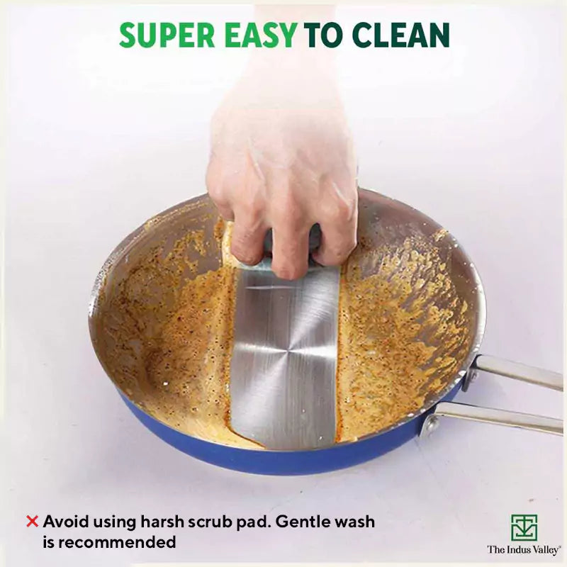 👌100% TOXIN-FREE: The Indus Valley’s Premium Stainless Steel Fry Pan/Skillet with Tri-ply Sandwich Bottom is 100% food-safe; without chemical coating. This toxin-free fry pan makes zero compromise on your health and ease of cooking.