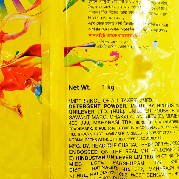 Details: New Sunlight Powder with Color Guard Technology protects your clothes in every wash to keep them bright & colorful for longer. Now your clothes will retain their glaze and feel like new even after 40 washes.