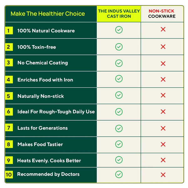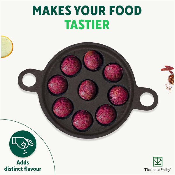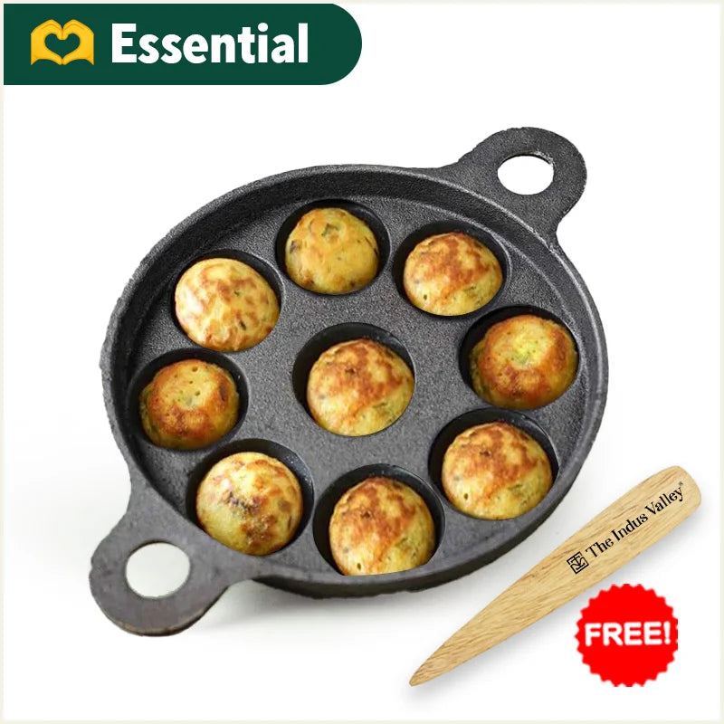 💪100% HEALTHY: The Indus Valley Premium Cast Iron Paniyaram/Appe Pan 9 PIT is 100% food-safe and toxin-free.
