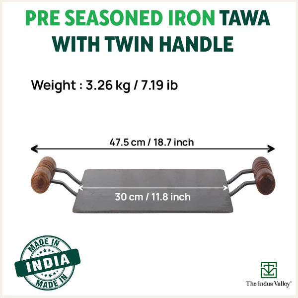 model number: Square Iron Tawa with Wooden Handle