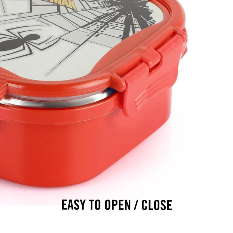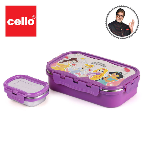 Introducing the Cello Kidzbee Thermo Click Toons Insulated Lunch Box – a dynamic mealtime companion for kids! A compact lunch box with kiddie prints, durable stainless steel material, and vivid colours that is perfect for school, picnics, and camping. The lightweight design fits easily in backpacks, while side locks and an airtight lid keep food fresh and secure. Inside, a leakproof steel container accommodates gravies and snacks. Stylish, functional, and safe, the Cello Kidzbee Thermo Click Toons Lunch Box comes in Red, Blue, Pink and Violet with Disney Princesses and Spiderman making lunchtime exciting for every child.