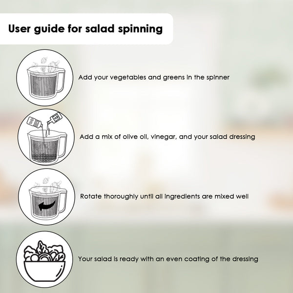 - Tasty Salad: For a fresh and crisp salad, rotate leafy vegetables, vinegar, olive oil and salad dressing together. Easy-to-Clean: The removable parts are designed for easy and quick cleaning, saving you time and effort in maintenance.