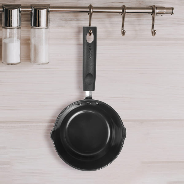 Vinod Black Pearl Hard Anodised American Non Stick Saucepan - 1.8 litre, 18cm | 3.25mm Thickness | Metal Spoon Friendly | Easy to Pour | 2 Year Warranty | Toxin Free - Black