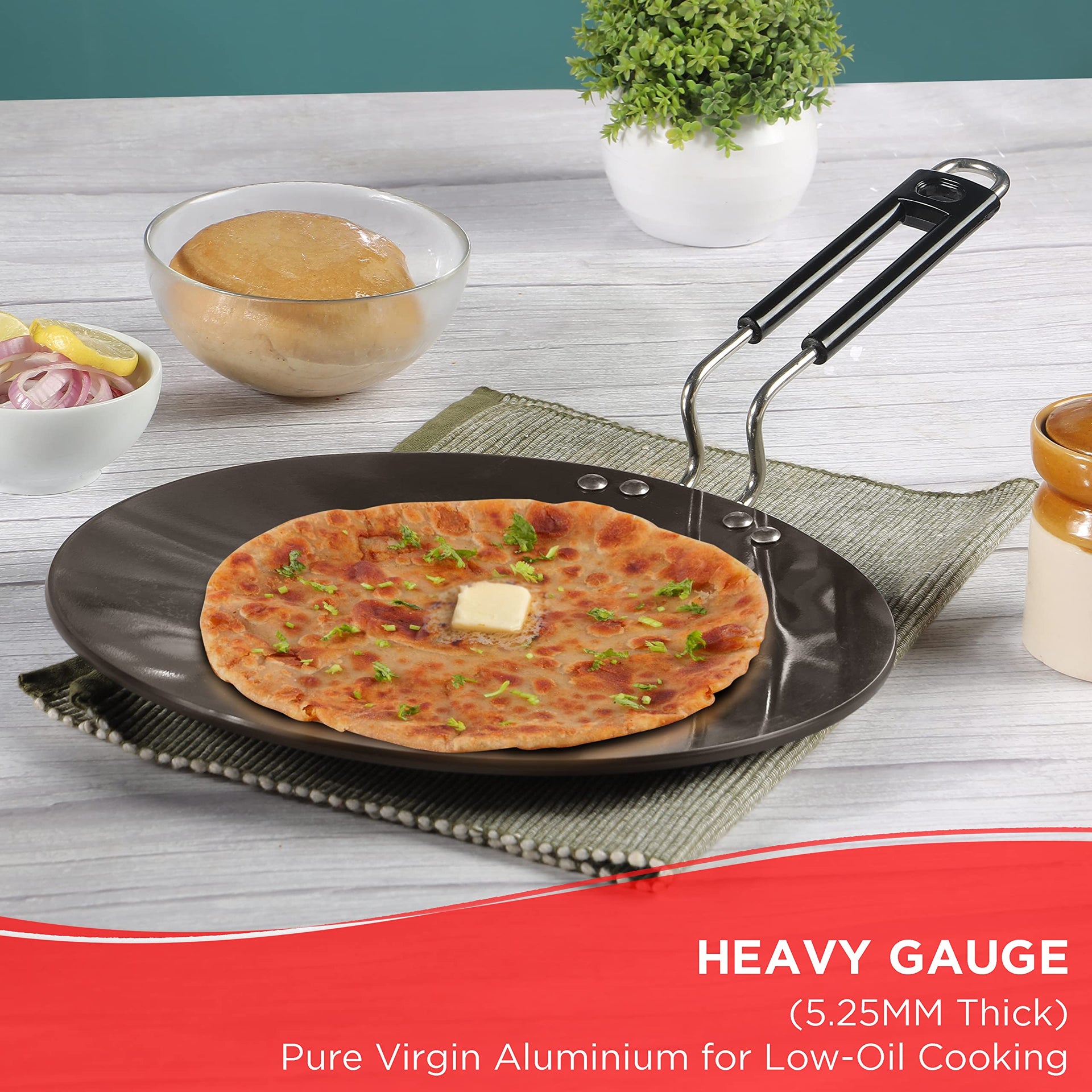 Details: Vinod Hard Anodized Cookware is designed with thick body which helps even heat distribution and makes the cookware long lasting and durable. Thick 5.25 mm 100% Virgin aluminium ensures even heat distribution which ensures the food does not burn. Itβs new improved coating makes the cookware durable and poses no harm to food. The beautiful, durable black finish which is hard anodised has two benefits i.e., it makes the cookware absorb heat faster, making it more energy efficient and the cookware stays looking the same for years. This cookware has sturdy riveted handle for better grip. This is only gas stove compatible. 24 Months Warranty