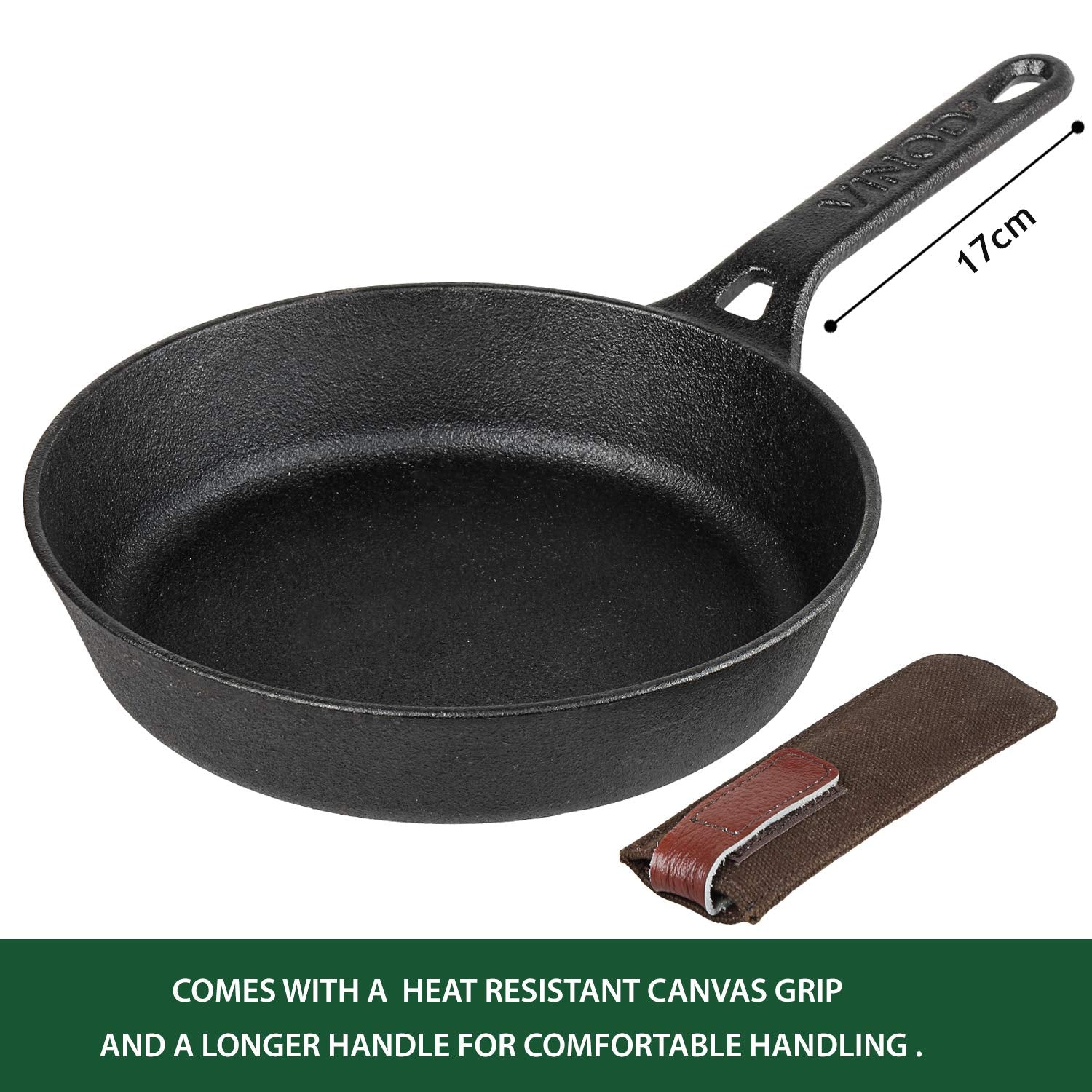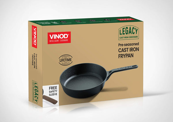 Details: Indian kitchens have honed the cast iron cookware since times unknown. The cast iron cookware can be used on stove tops, grills as well as in the oven which makes it possible to cook a large number of cuisines by using the same cookware. That means minimal space consumption and maximum utility which is just one of the benefits of investing in the cast iron kadai, cast iron tawa or cast iron frypans. Vinod Legacy Cast Iron is Multi-Functional where you can Bake in it, Fry in it, BBQ in it. Perfect for delicious curries, sautΓ©ing, frying, searing, roasting and getting that authentic βcharredβ flavour in your daily cooking