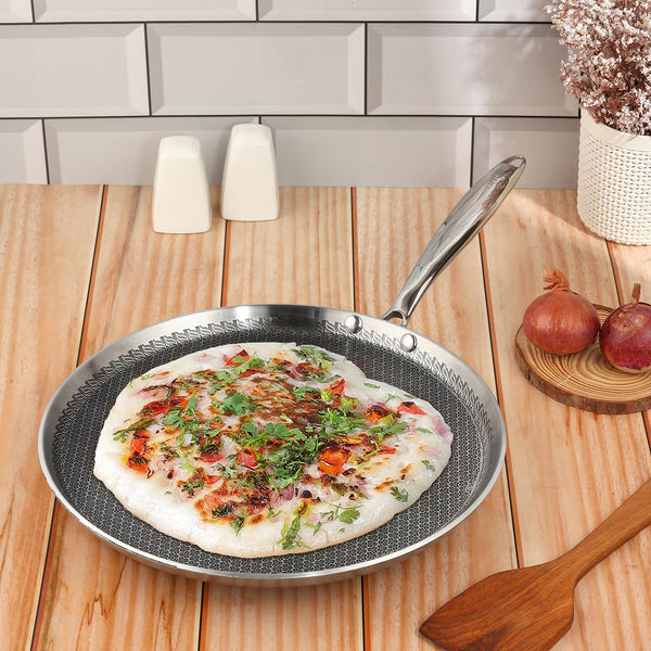 - ππ‘ππ¨ππ§ππ’π‘ ππ₯πππ‘πππ¬ πͺππ§π π π¨ππ§π-πππ¬ππ₯ ππ’π‘π¦π§π₯π¨ππ§ππ’π‘ - Designed with SS 430 magnetic stainless steel as the third layer, this dosa tawa is induction-compatible. Enjoy versatile cooking on both gas stoves and induction cooktops with consistent heat performance.