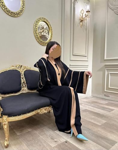 Women's Black Burqa with Contrast Trim, Full Length free size suitable up to 65kg body weight