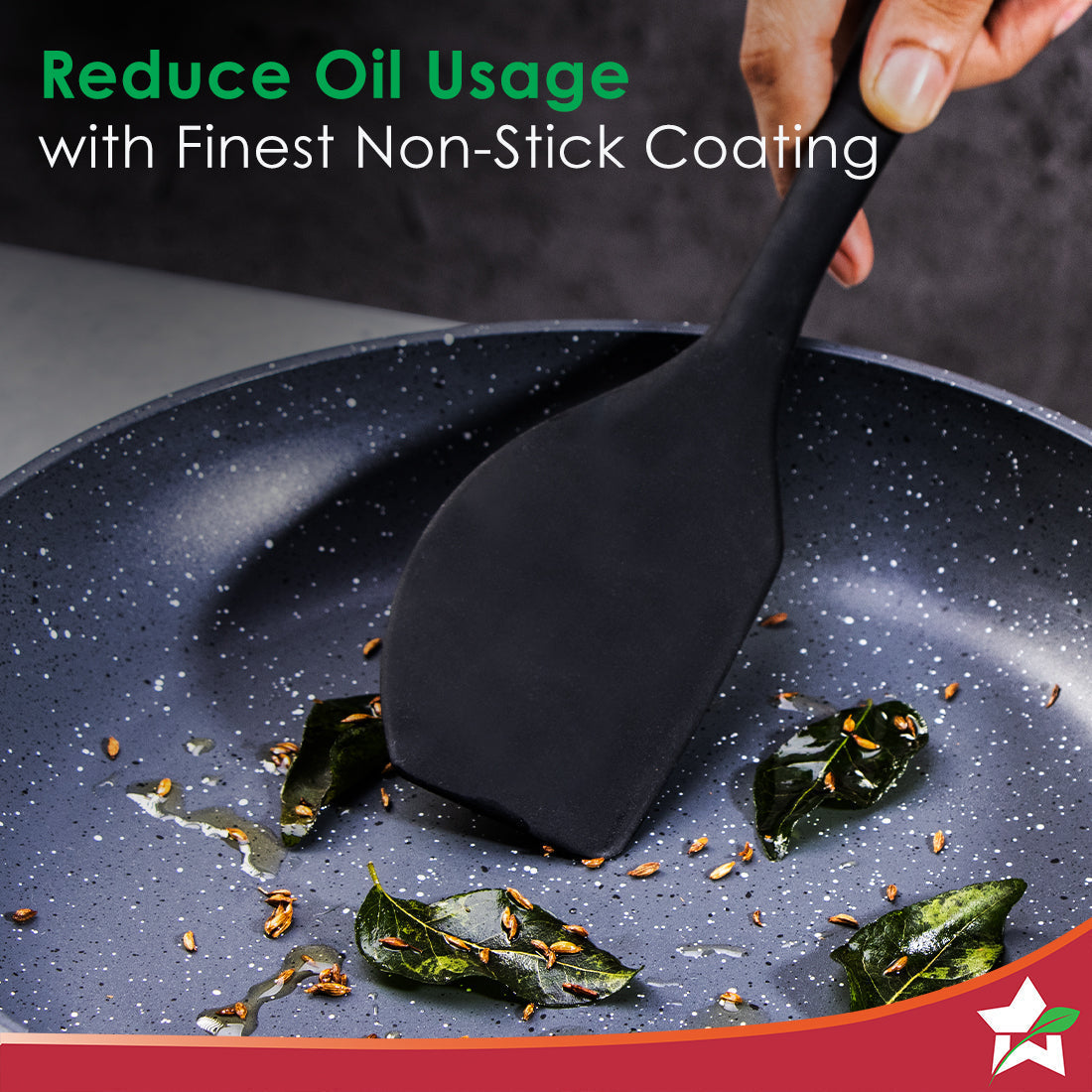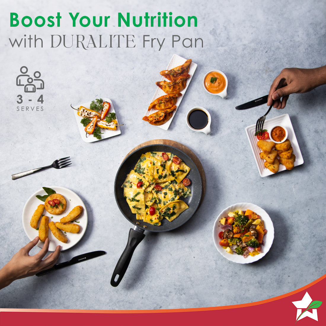 Duralite Pans are of the finest quality at an affordable price. These pans fulfill our dream of making healthy cooking possible in every home in the country. These pans are sturdy and solid as concrete, due to a special process of casting and solidifying molten metal. With a healthy German Meta-tuff non-stick coating, you will need minimum oil for cooking, thus making your food healthier!