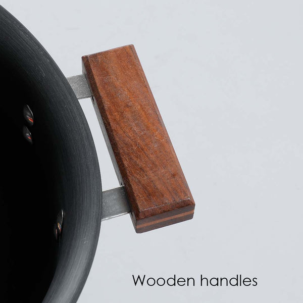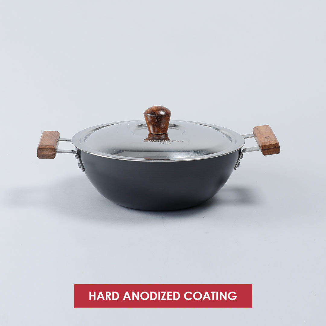 Ebony Hard Anodized 24 cm Wok with Lid 2.7 L | Ideal for Biryani, Pulao | Black