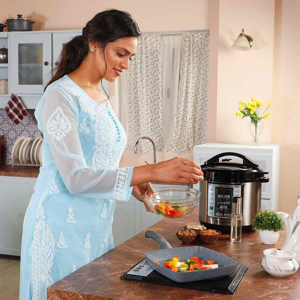 Enhance your cooking and dining experience with the most popular Wonderchef Granite Grill Pan. The granite finish gives the aluminium cookware a stylish and modern look. Wonderchef Granite Grill Pan is a great alternative to outdoor grilling. The granite finish gives the non-stick grill pan a stylish and modern look. Finest non-stick coating to grill veggies or meat for healthy, low fat and delicious meals.