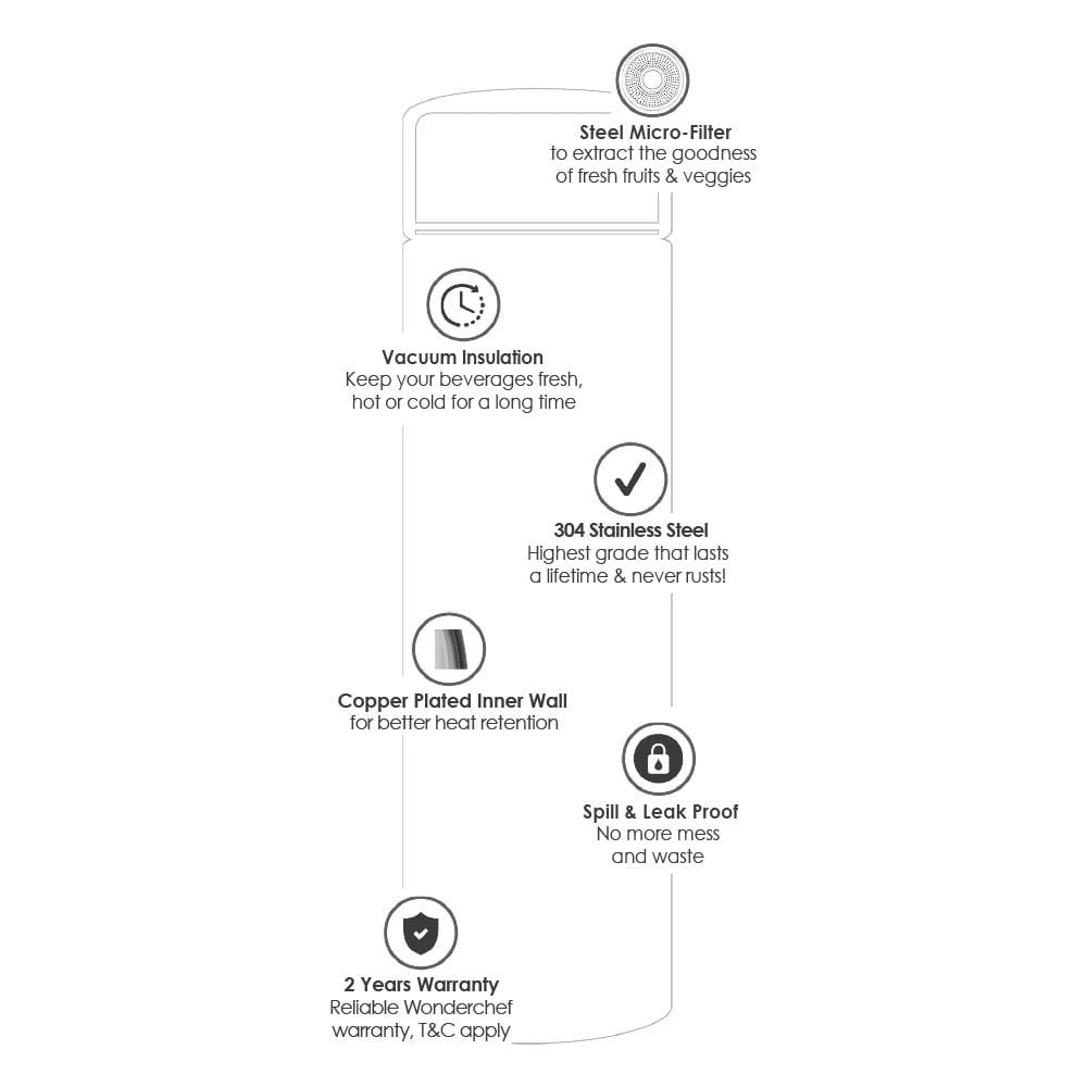 Nutri-Bot, 480ml, Double Wall Stainless Steel Vacuum Insulated Hot and Cold Flask, Steel Micro-filter, Spill & Leak Proof, 2 Years Warranty