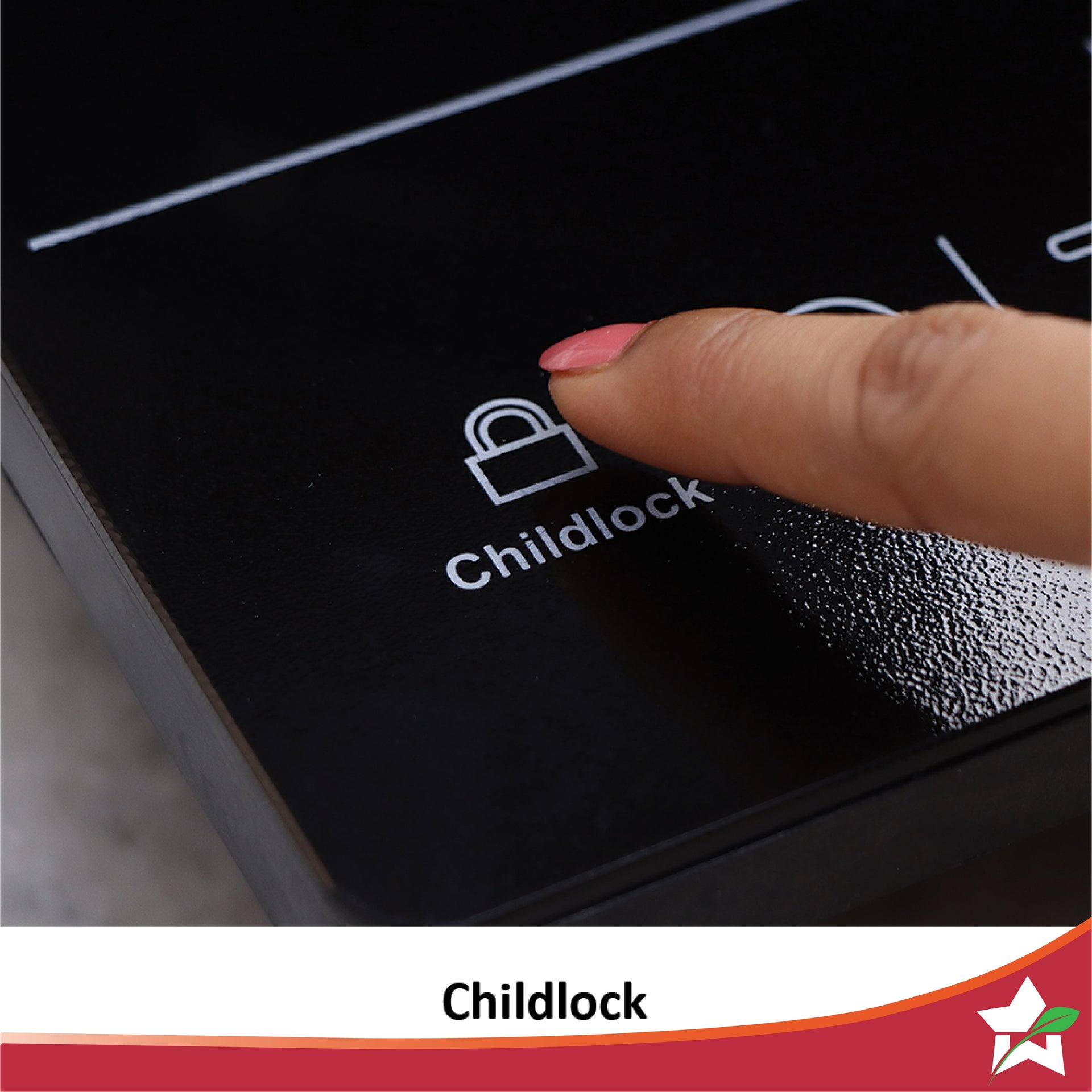 The child lock feature makes it very safe to use. Just long press the button till the red light starts to blink. This locks all the functions to save from accidental touches. Re-touch the button till the red light goes off, child lock is now switched off.