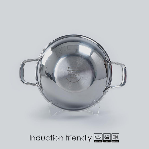 - 3-ply full body for quick heating. Steel-aluminium-Steel layers save energy and prevent burning of food .