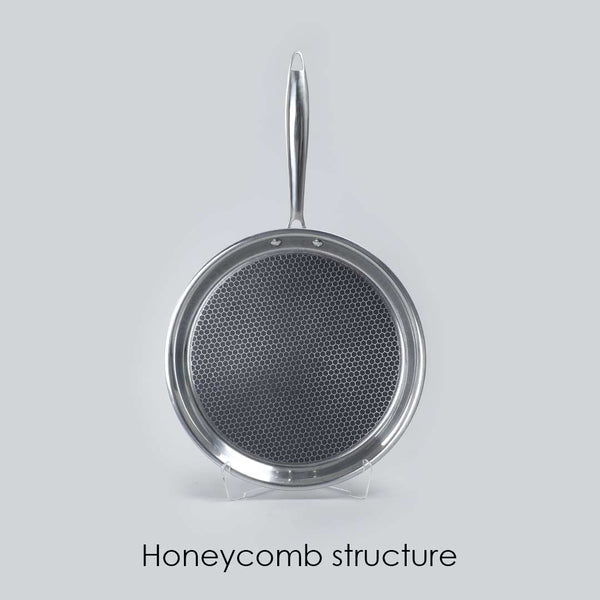 - The stainless steel honeycomb structure protects the underlying non-stick coating, creating a non-stick surface that is scratch-resistant, robust and long lasting