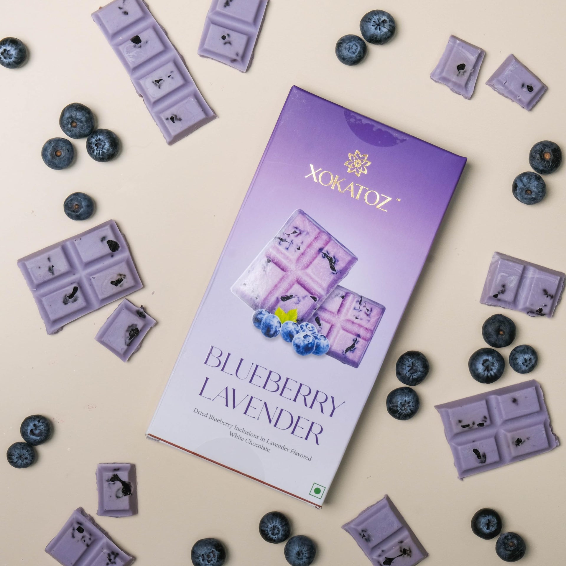 XOKATOZ Exotic Premium Chocolate - 1 Blueberry Lavender Flavoured White Chocolate Bars - Gift set - Pack of 1, 75g (75g x 1)